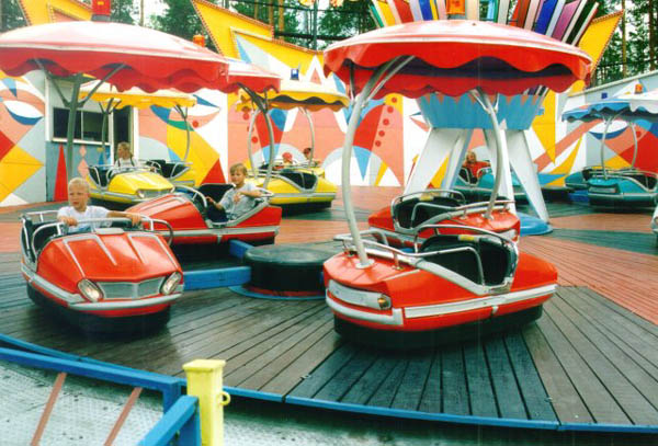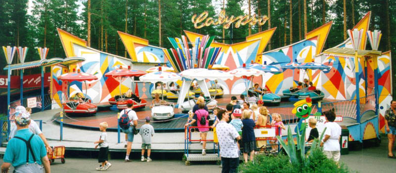 gondolas look similar to autoscooter-cars. I have to thank Lawrie Vartiainen for the pictures which were taken in summer 1997 at "Tykkimaki" Park in Finnland. |
